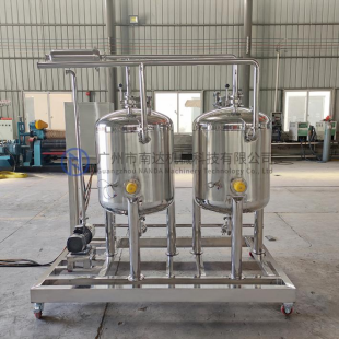 該CIP清洗系統(tǒng)由堿罐、熱水罐以及去程泵和各種閥門、傳感器、清洗管路、電控箱等組成。